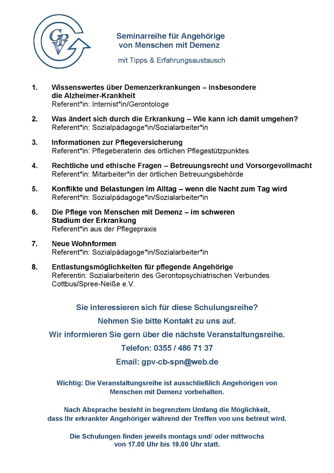 Angehörigenschulungen - Gerontopsychiatrischer Verbund CB / SPN